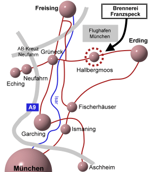 Von der B 11 links nach Hallbergmoos abbiegen. Am Mövenpick-Hotel